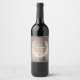 Rustic farmhouse stil-etiketter i klass vin flaska som består av en bakgrund av lätta träplåtar med vita vetelager som bildar personligens familj namn och år.