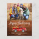 Rustic Wood Push Script Watercolor Vintage Red Lastbil med Pumpkins och Höst löv - Happy thanksgiving Photo Postcard