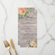 Rackkortsmallar för bröllop-meny - Elegant med Peach Vit ros Blommigt och String Ljus på Rustic Wood Background. En Perfekt för din stora dag! Alla textstorlekar i Stil, Färg kan anpassas efter dina behov.