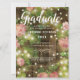 Skicka ett meddelande från elegant studenten till din familj och dina vänner med ett ryskt trädgårdstema med rosa ros och sträng ljus med ett trästängsel i bakgrunden som accentueras av sträng ljus. Typografin är i ett modernt skript och enkelt typsnitt för att du ska kunna anpassa dig med alla dina studenten-detaljer. Kortets baksida är rustiskt avvandt trä. Designad av världsberömd konstnär ©Tim Coffey.