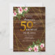 Rustic Wood Rosa Blommigt Guld Glitter 50:e födels Inbjudningar