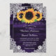 Elegantens lila- och solrosbröllopsinbjudningar är idealiska för en romantisk lila-rustik bröllopsfest inspirerad av solrosblommor. Matchande objekt är tillgängliga.
