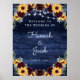 Rustic Wood Solros Navy String Ljus Bröllop Poster