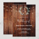 Rustic wood string lights monogram country Wedding Inbjudningar