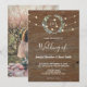 Rustic wood string lights monogram photo Wedding Inbjudningar