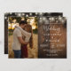 Rustic Wood String Lights Photo QR code Wedding Inbjudningar