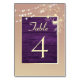 Den här eleganten och det moderna bordsnumret har en bakgrund av rustiskt lila trä, vackert försedd med guld-guldad blommigt snöre och delikat ljus. Perfekt för att lägga till en aning sofistikering och charm till din bröllop-décor.