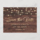 Rustic Wood String Ljus Bröllop spara datum Meddelande Vykort