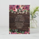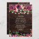 Inbjudningskort för möhippan med en mörk med rustik bakgrund av brunladuvirke och en ljus med tvillingsträng med rosa och burguner vattenfärg med blommigt och löv av grönt. Perfekt för bröllop eller möhippa i land/ladan. Kontakta oss om du behöver hjälp med att anpassa eller matcha produkter.