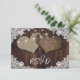 Elegantens OSA kort för landsbyggsbröllop inspirerat av rustiskt virke, spjälke och snöre. Anpassa enkelt dessa romantiska svarskort för det rotiska landsbyggsbröllopet som har sprickhjärtan på en rustisk träbakgrund som är försedd med strängen ljus och den vita blommigten snöre.