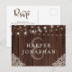 Postkort för Rustic Wood och String Ljus Snöre Bröllop OSA som har en rustisk träbakgrund med tvillingsträngar av ljus och vintage stil snöre i grund. "OSA" är avaktiverat i elegant men rustik typografi, skapar detta perfektens utformning för din boho eller ditt landsbyggsbröllop. Kontakta oss på cedarandstring@gmail.com om du behöver hjälp med designen eller matchande produkter.