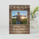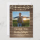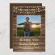 Ditt student-foto accentueras med en rustik, land, brunt vättat träplank och gult glöd ljus tillsammans med titeln på TACK, deras skola och klass OF-år i ett land-westernt handtryckt teckensnitt och deras namn i ett grovt penselskript. Baksidan ger ett ställe som skriver ditt tack-meddelande. PHOTO TIP: För snabbaste/bästa resultat väljer du ett foto med subjekt i mitten och/eller före skörd till en kvadratisk form FÖRE uppladdning och fyller i fotoutrymmet perfekt. Kontakta designern om du vill att designen ska ändras eller om du vill ha koordinerande element.