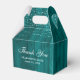 Lägg dina möhippa-/bröllopsgåvor från land i den här enkla, rustiska teal-bröllop-tack för att du föredrar lådor med ljus på en lada-träbakgrund.