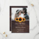 Personlig Solrossolrosfoto i bröllop sparar datumet på fotokorten med solblommor på en lada-träbakgrund. Med den här anpassningsbarna sparar du datumkorten, vilket är perfektens val för den rytmhärtiga bröllopsfest som inspireras av solblommor.