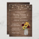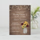 Rustic Wood Sunwers Burgundy Mason Burk bröllopsinbjudan. Rustic Wood Baby's utandning String Ljus bröllopsinbjudan