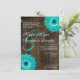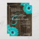 Rustic Wood Teal Gerber Daisy bröllop Inbjudningar