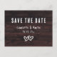 Rustic Wood Two Hearts Bröllop spara datum Vykort