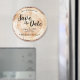 Anpassa dessa unika magneter i bröllop spara datum-cirkeln. Den har en kornskiva av trä, perfekt för bröllop.