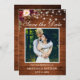 Rustic Wood Photo Förlovning Bröllop Meddelande Spara datumkortet inkluderar Blommigt burgundy ro, rosa ros, röd ros och grönt. Vita Ram. Sträng Ljus.
