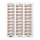 Adressetiketter med ett scenfotografi. En träbro som leder till en bana omgiven av att träd byter färg.