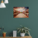 Poster med ett scenfotografi. En träbro som leder till en bana omgiven av att träd byter färg.