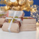 Svällning papper med ett scenfotografi. En träbro som leder till en bana omgiven av att träd byter färg.