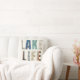 Embrace the serene vibes and simple joys of living by the water with this eye-catching "LAKE LIFE" accent pillow. The design is a tribute to rustic lake house decor, utilizing a charming collage of blue, teal, and natural wood-grain patterns for the lettering against a neutral background. This highly decorative cushion is ideal for anyone who loves boating, fishing, or simply relaxing by the lake.