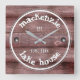Du är inte på klockan när du är på sjö-huset eller njuter av lite tid - men lägg ändå till ett litet land-charm till stugan, stugan, sjö-huset, tiden , eller så spillde hon med det här anpassadet, den strålande väggklockan, som har ett vätt/färgfäst/vintage/ett tryckt trästängsel som "säkrats" med skruvar, vitlövbeslag Skriva och faux-graverad fält för namn, ställen, "Grundande data," och all annan text som du väljer att lägga till. Välj mellan runda eller fyrkantiga klockformer. Design © W.H. Sim. Se mer på zazzle.com/expressionsoccasions