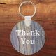 Säg tack med den här billiga, råa nyckelkedjan. Bakgrunden är ett foto av vackert skogskorn i brunt och grått i rand med långt lodrät. Orden "Tack" visas centrerat i westernt teckensnitt och kan enkelt anpassas om du vill.
