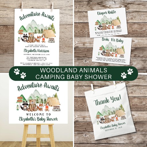 Rustic Woodland Animals Camping Baby Shower Inbjudningar