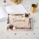 Med ett träslag som gränsar till ett sortiment av vita, gamla och burgiga blommor kan du låta din gäst deras önskemål och meddelanden med den här gästboken från Rustic Woodland Feathers och Blommigt Bloom Collection. Anpassa med ditt namn och bröllop-datum på framsidan, ditt initialer på baksidan och din anpassningsbar på gästbokens rygg. Bakgrunden ställs in på en beige, kastanjemässig, taupfärgad och umberfärgad duk med rörligt grafiskt inslag för en ännu underbarare anpassningsgrad.
