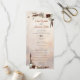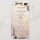 Bröllopsprogrammet avgränsas av ett sortiment av vita, gamla och burglösa blommor, löv av skogsmark och en uppsättning av ortoka fjädrar, på en beige, kastanj, taupe och en handmålad duk. Anpassa innehåll med namn, bröllop, plats och datum, liksom din bröllop-ceremoni. Den omvända sidan har bröllopsfesten placerad i mitten av arbetsytan. Utformningen har flyttbar grafisk inslag så att du kan anpassa layouten till innehåll i hjärtat. Det här bröllopsprogrammet koordinerar väl med resten av objekten i Rustic Woodland Feathers och Blommigt Bloom Collection.