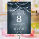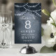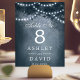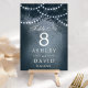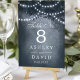 Lyft upp din roliga bröllopsmottagning med de här fantastiska bordsnumren. De här bordsnumren har en stor silhuett från träd, med en tvillingsträng ljus mot en serenblått bakgrund, och tillför en gnutta magi till din speciella dag. Perfekt för firande utomhus eller inomhus skapar de en varm och inbjudande ambians för dina gäster.