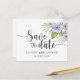 Spara datumvykortet enkelt och elegant. Den har en minimalistisk, handskriven kalligrafi i stil och en strålande lila blommigt arrangemang i hörnet som målas i vattenfärg. Enkel att anpassa med din unika information.
