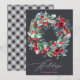Rustig blommigt röd grått Julkrans lycklig Julkort