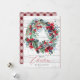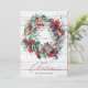 Fira jul- och vintersäsongen med detta roliga, färgade, marinblått och botaniskt grönt med blommor, heliga bär, gräs grenar på ljust grått-strand med en redigerbar rödfladbakgrund.
