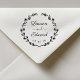 Anpassningsbar-designad bröllopsstämpel med modern manuell kalligrafi med handdragen blommigt andedräkt. Anpassa med brudgummens namn och bröllop datum. Perfekt för rustik, land och boho tog bröllop.