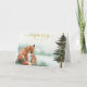 Typografiska julklapp "Comfort & Joy" i hälsning i guld med en vacker, mistlig, vattenfärgad bergscen med mamma och hennes baby. Fox är på lämnat, med dimma i bakgrunden och ett stort träd i gräs vid högerna.