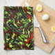 Rustig, grönaktig gult och levande röd kurvor kökshandduk