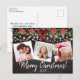 Det här festive helgdag-vykortet har en roligt rustik utformning med tre foton på en träbakgrund som är försedd med helgdag och överdragen med en evergreen & poinsettia garland. Rubriken lyder "God jul!" med en punkt att mata in året med. Baksidan har plats för ditt eget meddelande och namnteckning. Underbart sätt att skicka årstidshälsningar!