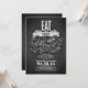 Ät dryck och håll Vintagen Typografiskt Rustic Land design med präglad repetitionsmiddagsinbjudan. Perfekt svart kalkbräda struktur inbjudan - rustik land stil, för rehearsal och middag i din lada eller land chic bröllop.