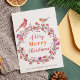 Traditionellt inspirerat rustiskt familje- eller affärs-julkort med söt rödbrug, lila, rosa och orange, krans med vall och två fåglar - kardinal och rån - och ett modernt typografiskt skript för contemporary "A Väldigt God jul". ++++++++++ Anpassa den med tre linjer önskemål och ditt namn! ++++++++++ Du kan lägga till handskriven personlig text och namnteckning på motsatsen.