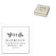 Klassisk med en rustik twist, detta returadressstämpel har ett monogram omgivet av grenar. Ett stort efternamn sitter ovanför en returadress. Gör en fin bröllops- eller brudshowerpresent. Även bra som husvärmningspresent. Perfekt för att adressera dina julkort (designen matchar Lea Delaveris Designs rustika monogramsamling).