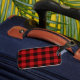 Rustik vinterrödsvart buffel, helgdag, mode-tillbehör. God jul röda buffelcheckskablar.
