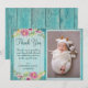Rustig Rosa Blommigt Blue Wood Baby Shower Tack Kort