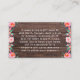 Här är ett kort för barntillsyn som följer med dina inbjudningar till babyduschen. Den här designen har en mörk träbakgrund som avgränsas av en söt rosa ros-vattenfärgad blommigt tillsammans med Bokar för mer information om Baby. Och på baksidan är samma vattenfärg ro i ett sött upprepat mönster. Om du har en designfråga eller vill se den här designen på en annan produkt kan du kontakta mig på jschmidtdesignworks@gmail.com. Design © Judith Schmidt.