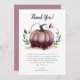 Elegant och rustik barndusch tack vare ett mallkort med en vattenfärgad illustration av en rosa pumpa med blommor från Faux guld och burgundblommor. Budskapet tackar gästerna för att de kom till duschen och för presenten. Anpassa den här produkten genom att lägga till ditt namn i grund. Utformning av Perfekt-falltema för ett flicka.