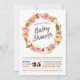 Populära inbjudningskort för platta blommigtar med hög rustik trendig bröllop-designer. Rustik med en vintage sommar-/vårtidskänsla. Blommor med fantastisk rosa och orange i vattenfärg (rosor) utgör en kvinnlig, vacker, cirkelformad krans. BABY Docka typografi/manus inom den söt blommigtens krans. En mall för Pip Pip Hooray-design. Fyll enkelt i mallen med dina egna uppgifter här och nu för att få en prisvärd, professionellt tryckt inbjudan-sats levererad till din dörr! Varje inbjudan har ett storlekare anslag som är gratis och som ingår i de överkomliga kostnaderna.
