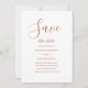 I designen visas klassiskt elegant bröllop för att spara datumet i terracotta för att bränna orangens kalligrafi och typografi med vit bakgrund. Utformningen är klassisk och kommer att vara perfekt för bröllop.