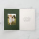 Elegant helgdag-fotokort med en vattenfärgad krans av gräs-koner, gräs-badkar och lysgrey med en ljusgräddbakgrund. "God jul" visas med mörk grönt bokstäver. Anpassa framsidan av helgdag på gräs-ikonen med lodräts foto och namn. Insidan av kortet innehåller ytterligare ett foto med utrymme för ditt personliga meddelande.